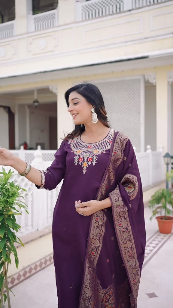 Wine Color Coding Embroidery Work Designer Party Wear Salwar Suit