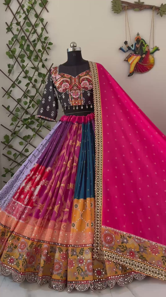 Multi Color Digital Printed Mirror Work Navratri Lehenga Set