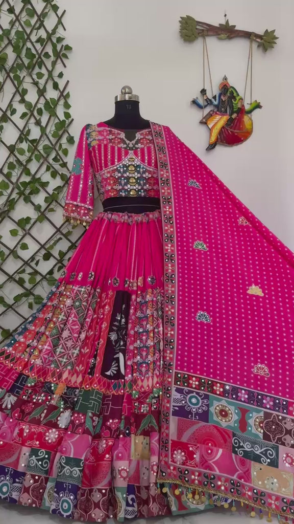 Pink Color Navratri Digital Printed Mirror Work Lehenga Choli